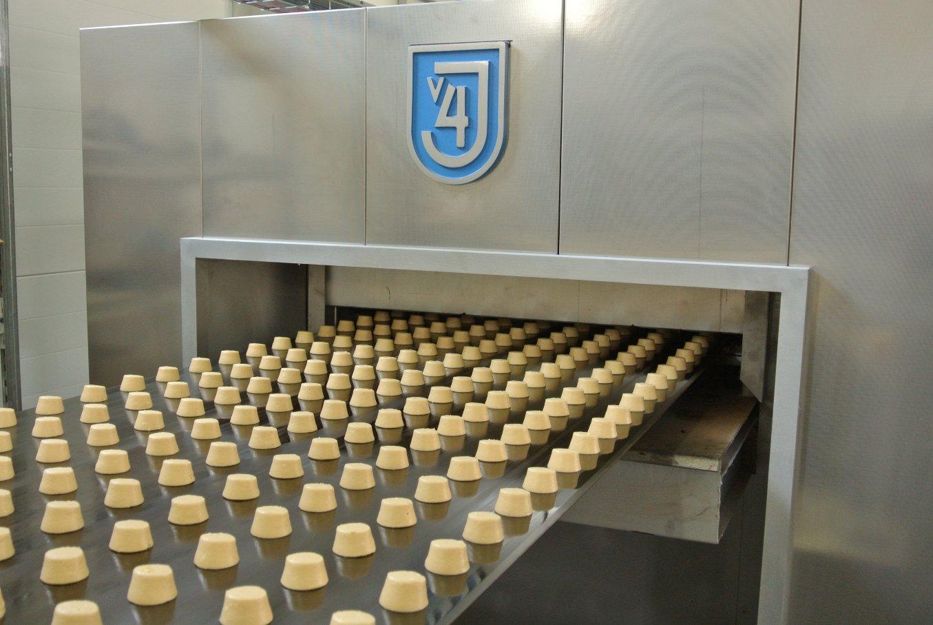 Компания J4 о.о.о. запустила новую ленточную печь типа PPP 1 12.311 по выпечке пряников. Особенность состоит в том, что продукт высаживается непосредственно на пластинчатую ленту. Печь имеет две башни и снабжена четырьмя зонами для регулирования температуры.